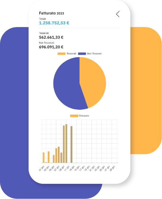 La componente H-Business Analysis si occupa di recuperare, analizzare e presentare informazioni utilizzando una dashboard grafica. Queste informazioni sono dati aggregati ed elaborati relativi a distributori, gruppi, punti vendita, tessere fedeltà, prodotti, reparti, ecc. È possibile analizzare il fatturato nel tempo, confrontare diversi periodi e personalizzare gli intervalli di analisi in base alle esigenze del momento.